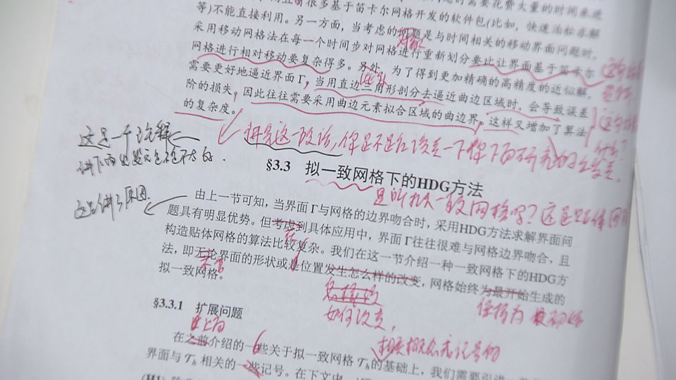 谢资清曾经的学生太阳集团tyc151数学与统计学院副教授汪波:“上面密密麻麻,包括页边的地方。是空白的地方都已经写满了,上面要划掉,要改成什么样子,打上箭头。有文字的地方,都有很多箭头。这里指,那里指,这里打个圈,那里打个圈。”