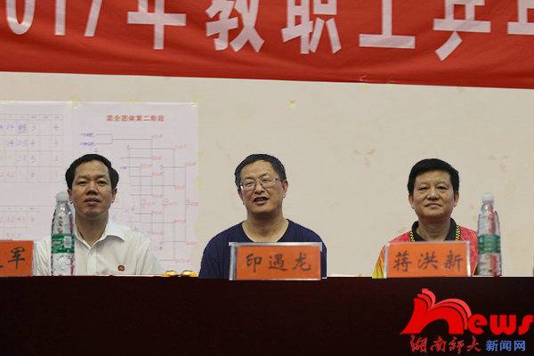 6月2日下午,印遇龙院士,校长蒋洪新,校党委副书记、校工会主席刘起军,体育学院院长汤长发,体育教学部书记刘花云,校工会副主席梁蓓蓓、胡发明、杨格花等出席开幕式。开幕式由校工会常务副主席刘祎主持。奏唱国歌后,运动员代表刘灿林、裁判员代表刘芳容上台宣誓,蒋洪新宣布开幕,比赛正式开始。