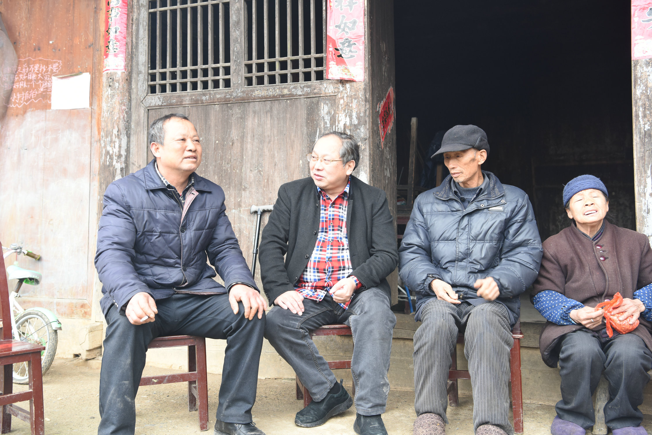 校党办副主任沈贤岚、校扶贫工作队干部张元强陪同刘祎一行来到校工会并村新增贫困户结对帮扶对象杨焕斌老人的家里进行了走访慰问,并详细了解其贫困状况,商讨帮扶脱贫方案。