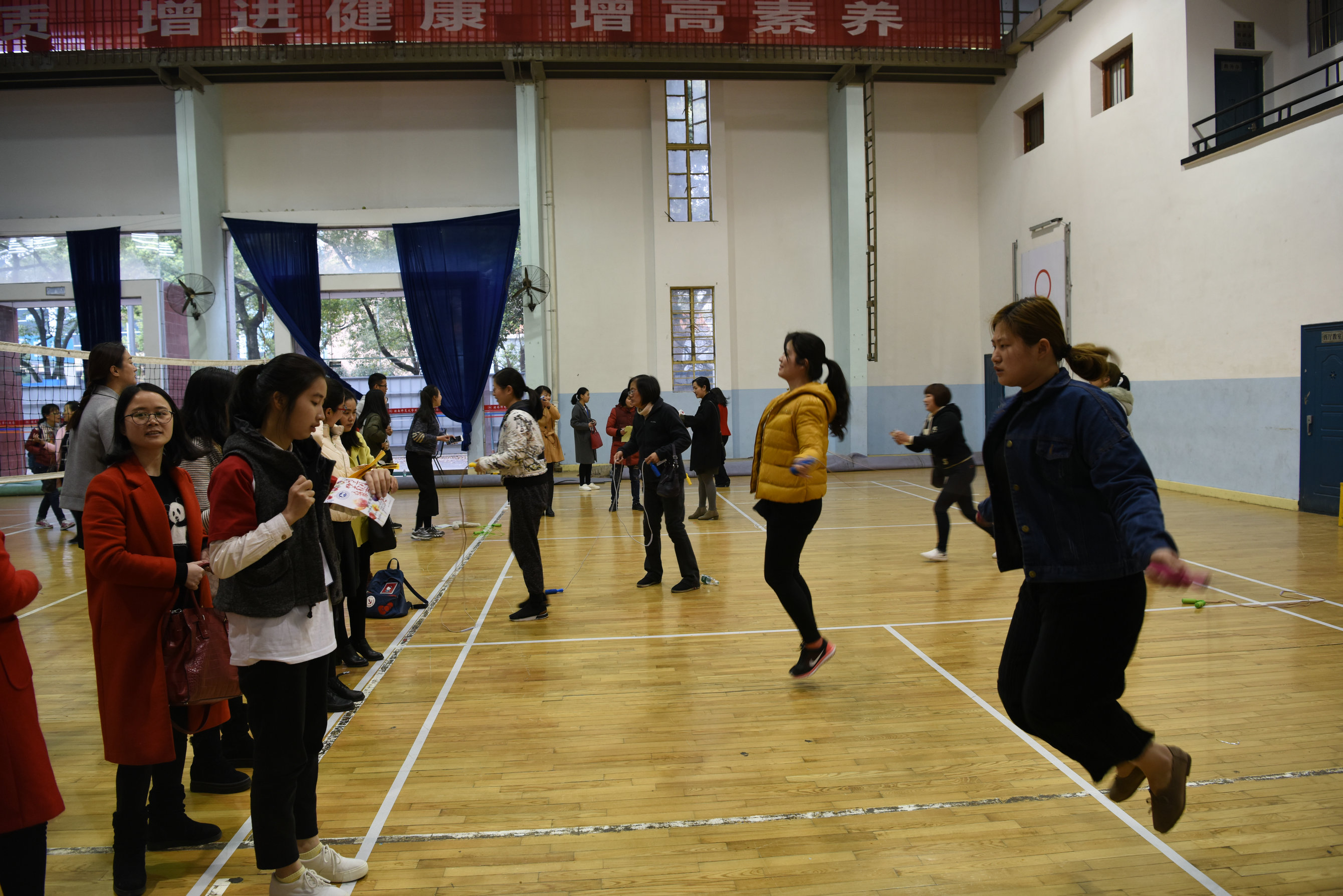 游艺活动共设置了十个趣味游戏项目,来自各学院和部门的女教职工1500余人参加活动。“十圈十美”转呼啦圈游戏展示了女性的体态美和柔韧性;紧张激烈的“掌上明珠”以及“蒙眼敲锣”则考验了身体的平衡性;“极目远眺”既不失趣味性,又间接考验了视力;要求用圈套中易拉罐的“百发百中”游戏和用球击易拉罐的“弹无虚发”最受欢迎,参与人数火爆,文明使者服务队的志愿者不停地在摆放道具,乐此不疲。此外,妙趣横生的“青蛙跳水”、“快乐毽子”、“单人跳绳”、“趣味猜谜”等游戏也充分地展示了我校女教职工激情拼搏、团结友爱的精神风貌。