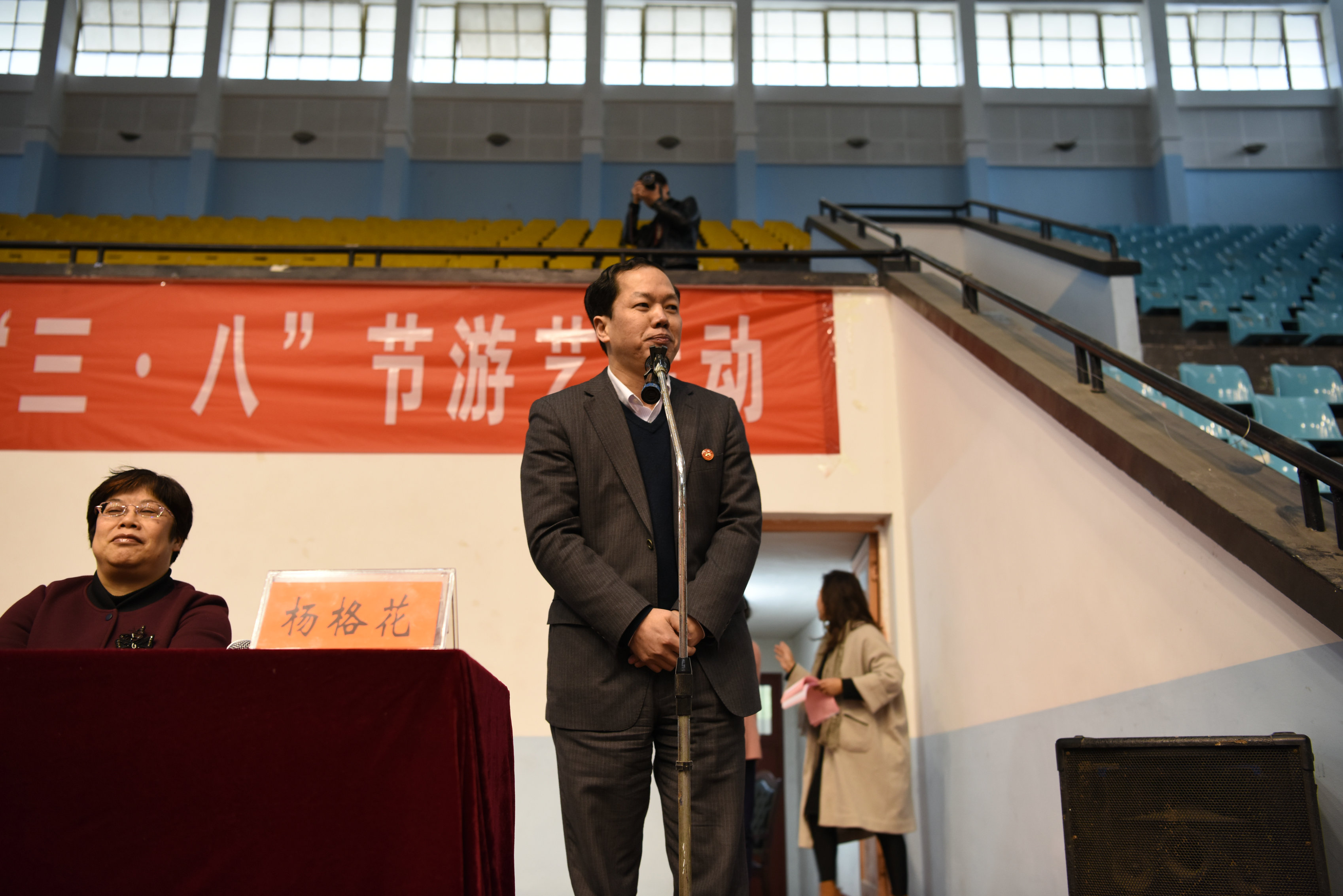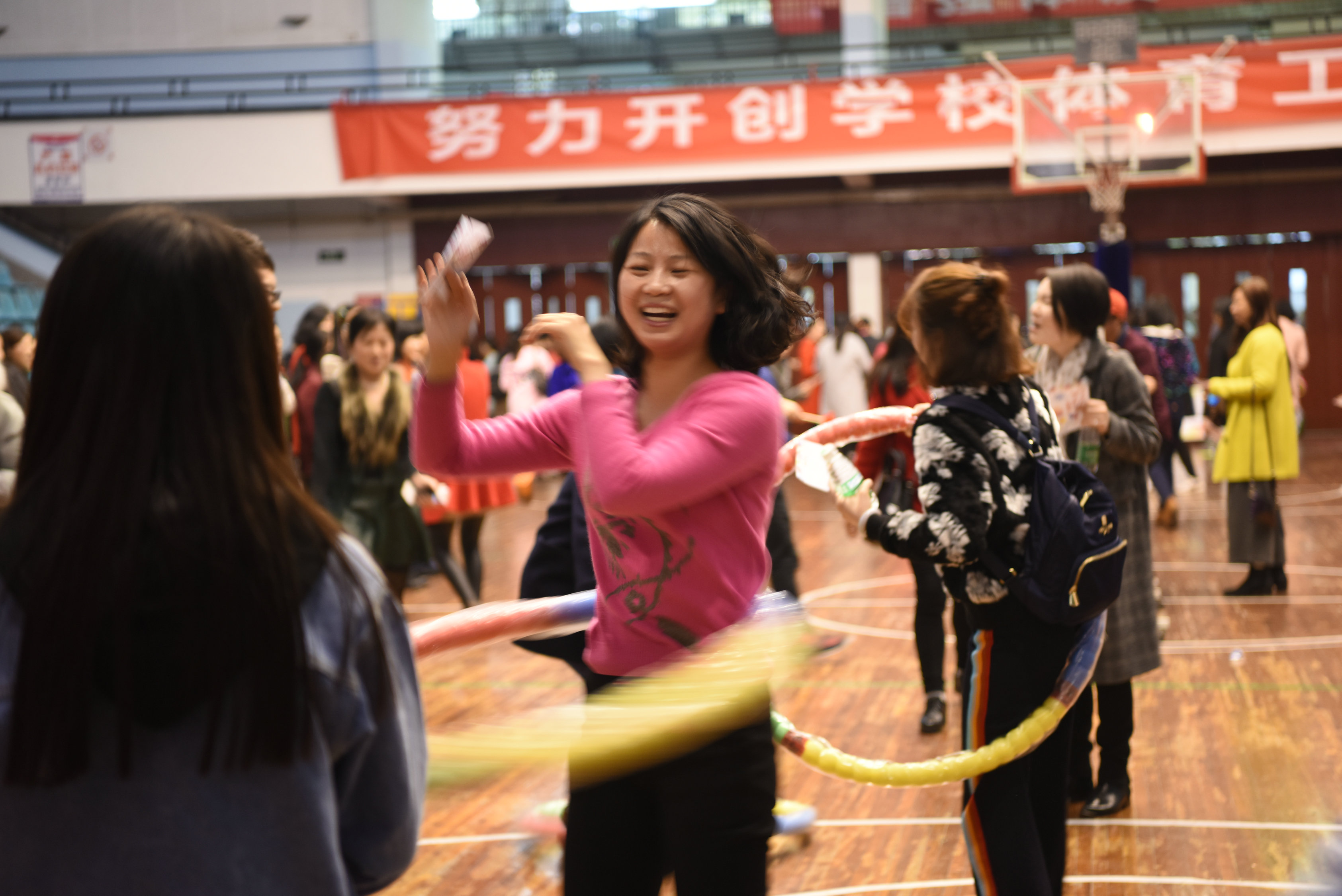 刘祎对全体女教职工表示节日的慰问及祝福,他深情说道:“女神未嫁是掌上明珠,出嫁是倚人小鸟,为人母亲更是无私的天使,无论诗书琴棋烟酒花,还是柴米油盐酱醋茶,你们都是行家里手,人中极品,女中精华,你们无时无刻不发散着人性之真,女性之美。因为人类对真的追求,对善的依恋,对美的热爱,才有了三八节这个特别的日子。可为人女,为人妻,为人母并不是设立这个节日的全部意义。三八妇女节最重要的意义在于让对这个世界习惯于奉献的女人能骄傲地做回自己。我们欣慰地看到亲爱的女神们成为我们这个美丽校园最绚丽的风景。---”之后的抽奖环节,扣人心弦,最终85名幸运者得到了精美礼品。刘起军宣布活动开始后,游艺活动拉开帷幕。