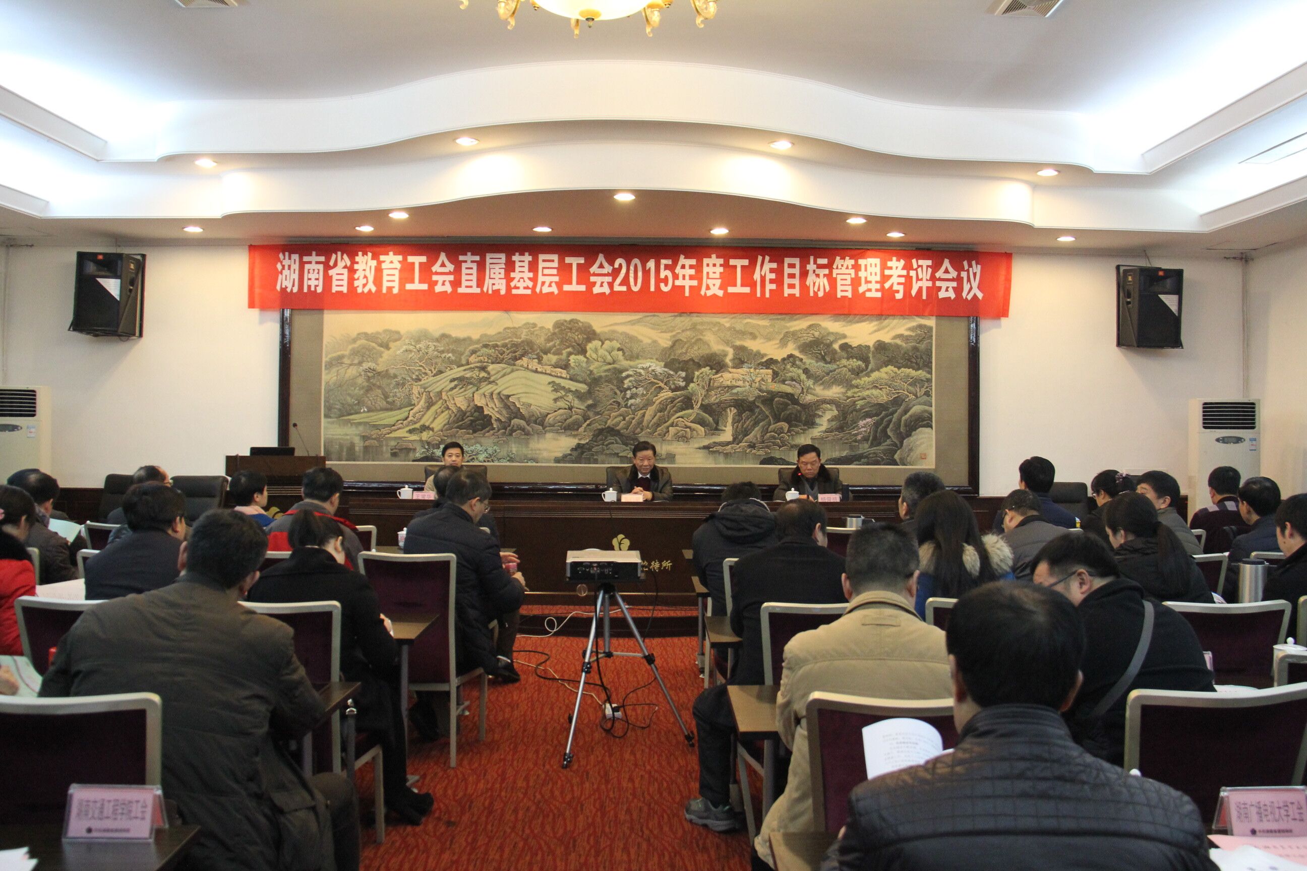 1月7号上午,湖南省教育工会直属基层工会2015年度工作目标管理考评会议在省委招待所会议中心举行,来自全省省属本科院校及附属医院共43家单位的工会负责人参加此次会议,我校工会常务副主席刘祎、副主席梁蓓蓓代表我校工会出席。