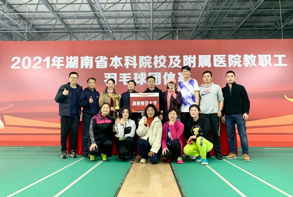 12月9日—10日,由省教育工会主办的2021年湖南省本科院校及附属医院教职工羽毛球团体赛在湖南人民体育场隆重举行。来自全省本科高校、附属医院共40支羽毛球队、近500名运动员参加了此次比赛。经过多轮激烈角逐,我校代表队荣膺亚军,实现了我校在该项赛事成绩的历史性突破。