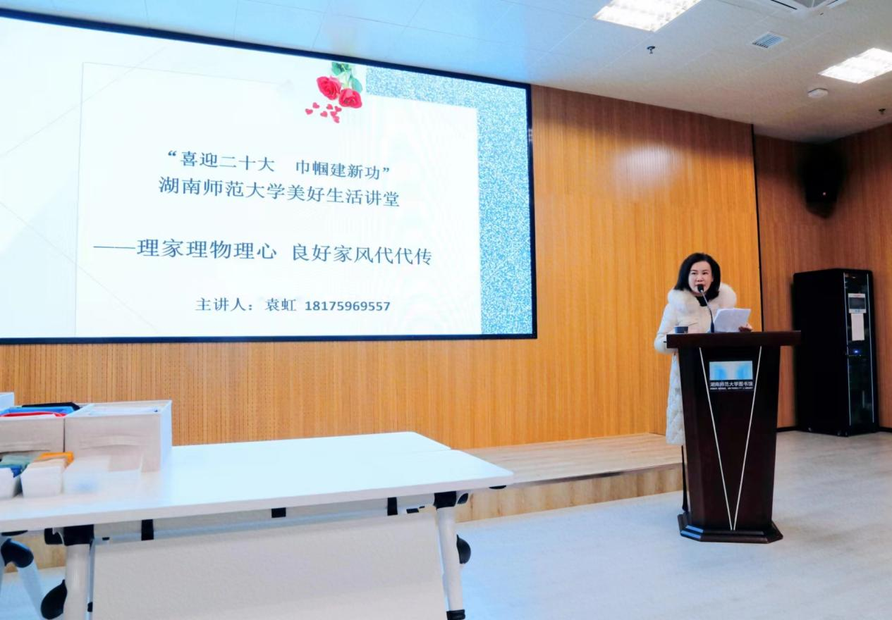 为更好地满足广大教职工对美好生活的追求,帮助提高日常整理收纳技能技巧,营造文明和谐的生活工作氛围,促进广大教职工交流学习,3月23日下午,校工会在图书馆 2 楼 222 多功能室举办“美好生活讲堂•整理收纳实务”讲座,由高级整理师袁虹主讲,100 余名教职工到场听讲。讲座由校工会副主席杨格花主持。