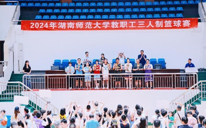 表演赛后,2024年学校教职工三人制篮球赛颁奖典礼暨闭幕式在体育学院行健体育馆主馆举行。校工会常务副主席余英为获奖队伍颁奖并宣布2024年太阳集团tyc151教职工三人制篮球赛圆满落幕。