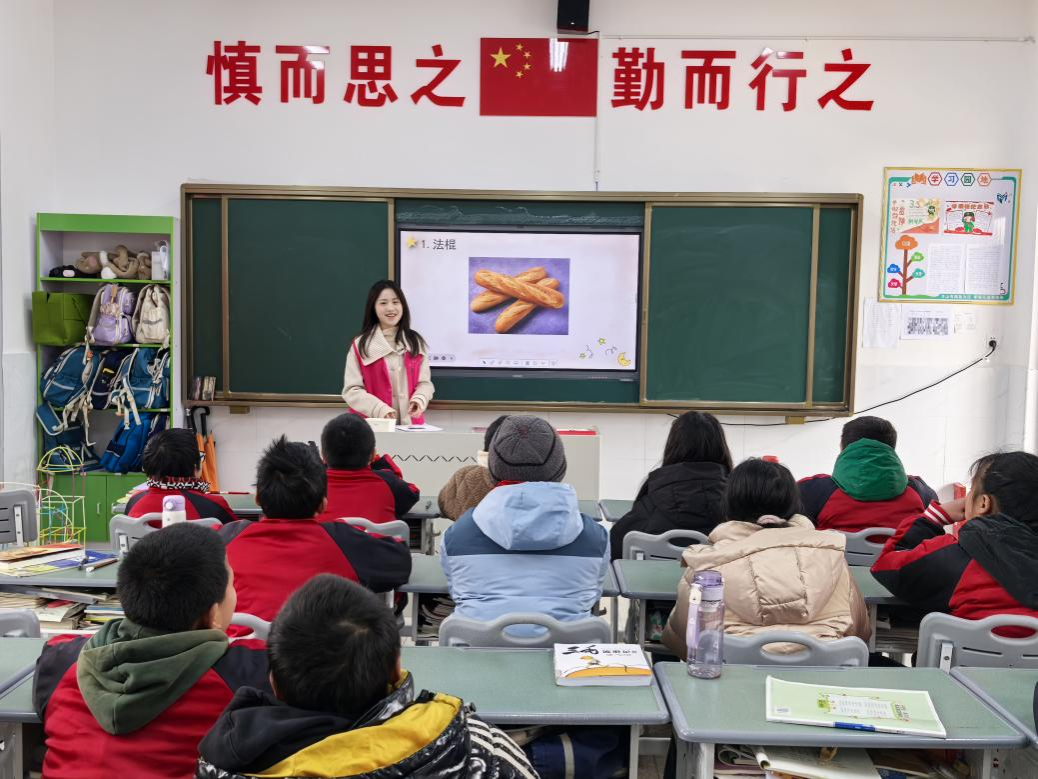 随后,工作室一行开展了随堂听课、集中评课,学生志愿者还给五一小学的孩子们带来了一堂生动有趣的“国别文化课程”,让孩子们体验了世界各国文化的多样性。