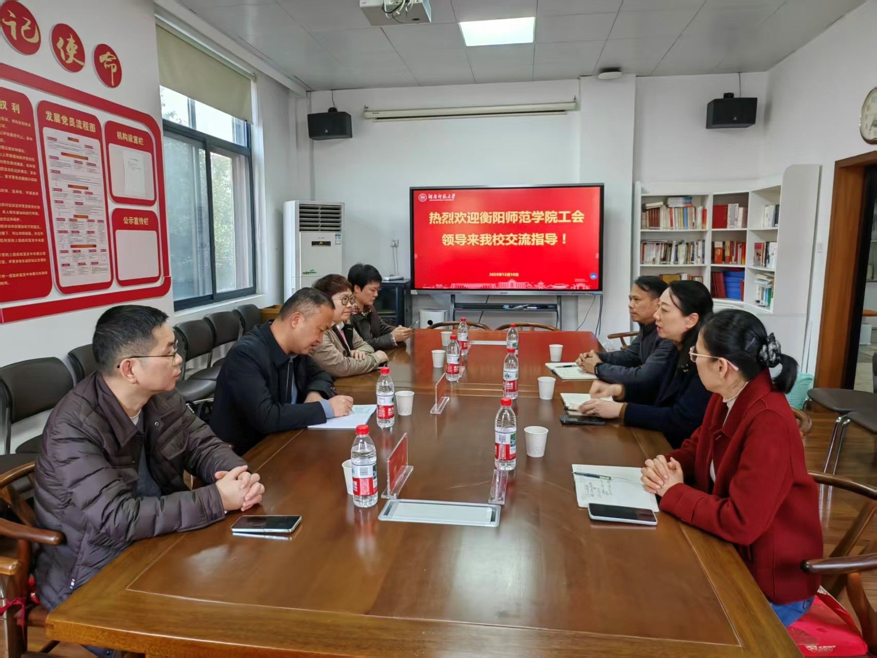 12月10日下午,衡阳师范学院工会常务副主席张波勇等一行4人来我校调研,座谈会在校工会三楼会议室举行。会议由校工会常务副主席余英主持,副主席杜汉文、邓宏霞参加交流会。
