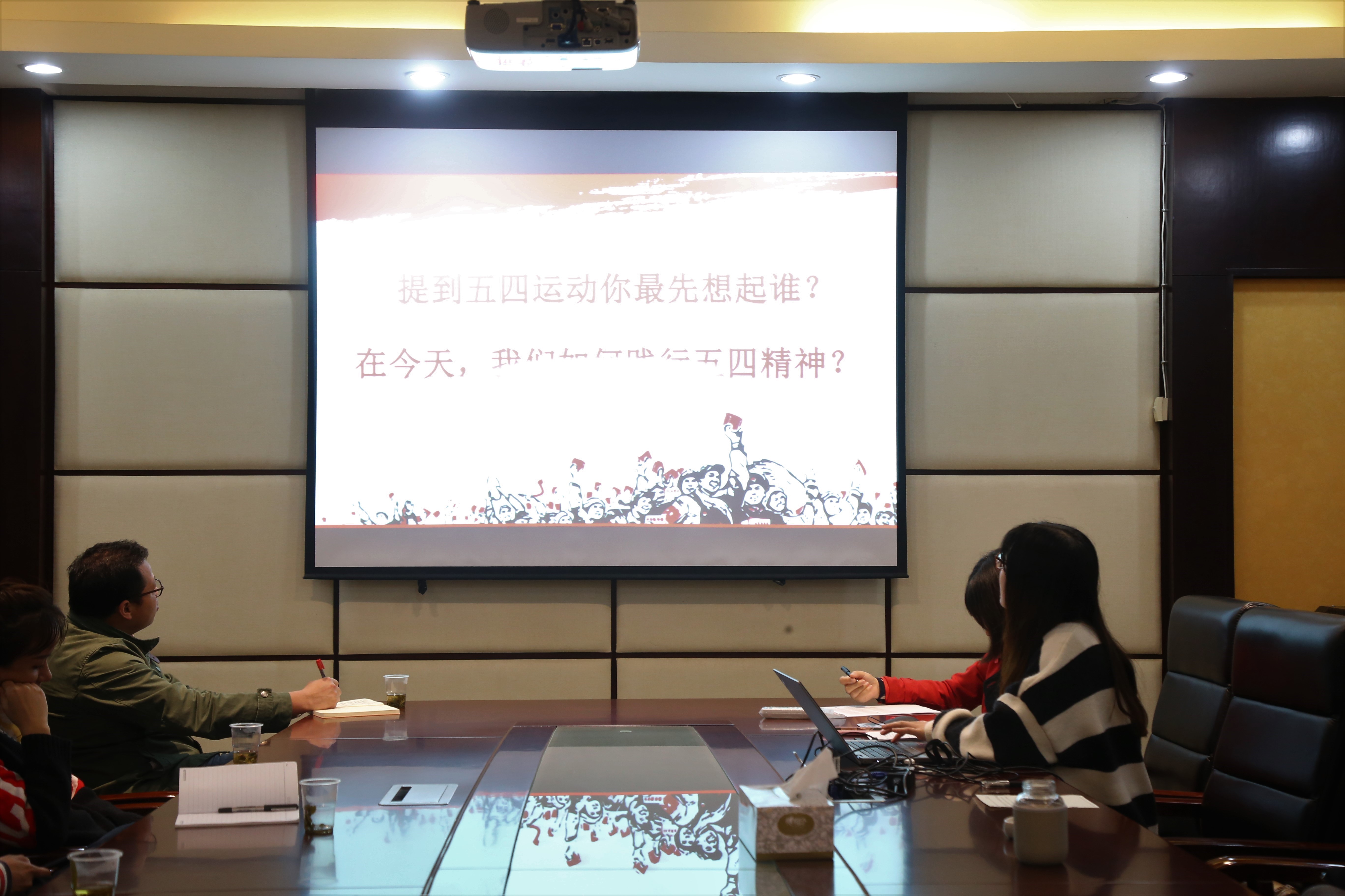 座谈会上,与会人员先集体观看了短片――《五四运动 神州觉醒》,接着柳甜带领青年职工共同学习并解读了“习近平总书记关于‘五四运动和五四精神’的重要论述”;熊婷婷以“‘五四’史料及文物赏析”为主题分享了1919年五四运动中的名人轶事;陈伟以“敢为人先,勇于创新,争做新时代新青年”为主题,分享了自己的所思所想所做。三位青年馆员分别从“过去”“现在”“将来”三个角度解读了“五四”精神。此后,与会青年进行了热烈讨论,大家纷纷表示要勤奋学习,以更加昂扬的姿态和更加扎实的作风投身于未来工作之中,用实际行动践行五四精神,为图书馆和学校的发展做出贡献。