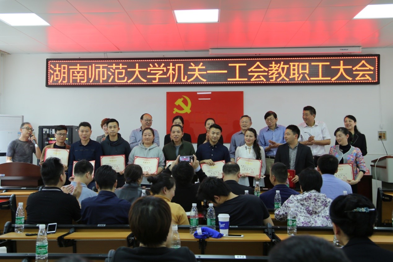 段巍宣读了机关一工会获得学校2018年度工会工作表彰的集体和个人名单,向获奖的单位和个人表示祝贺。