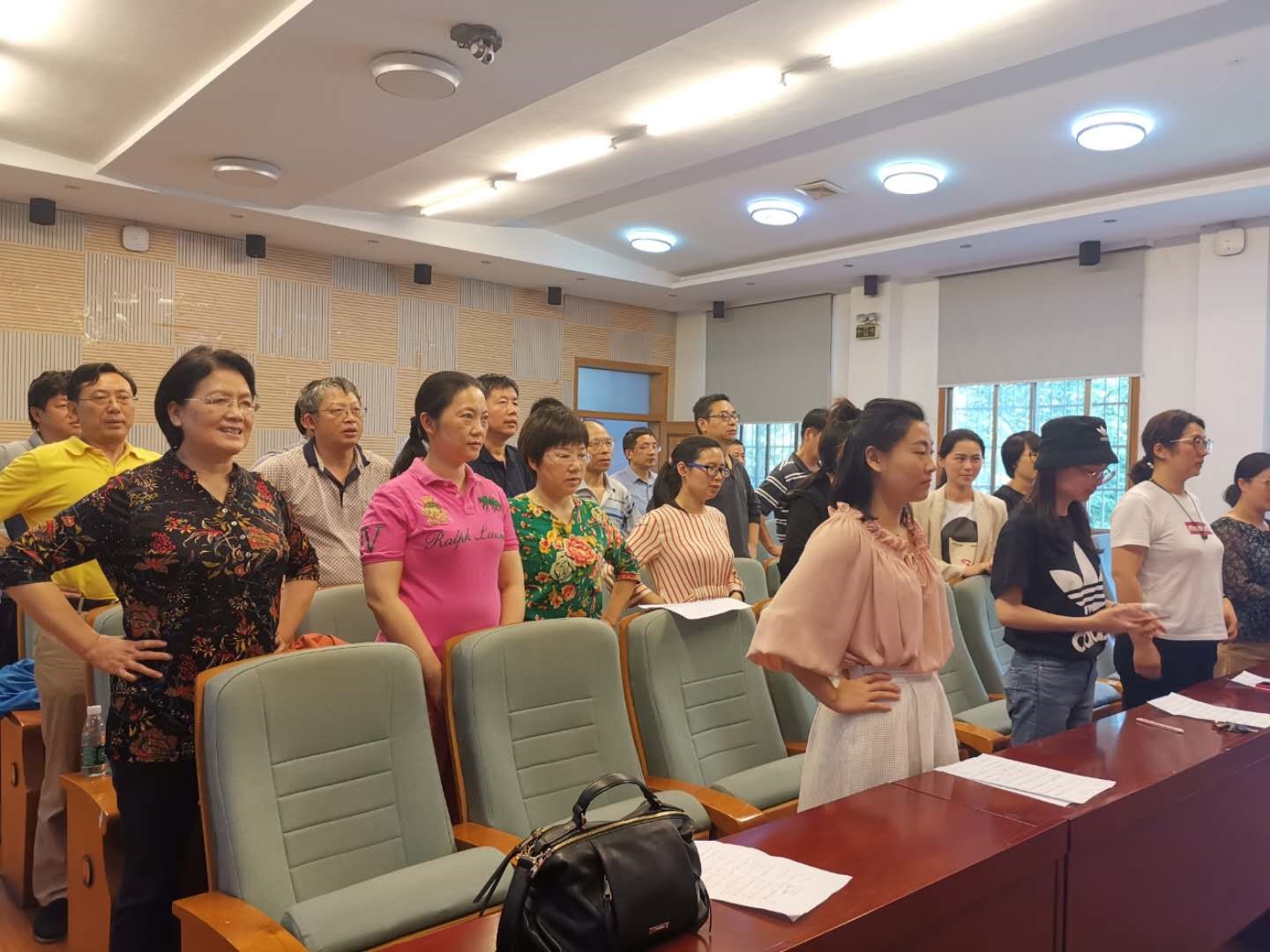 开班仪式结束后,老师们一起合影留念。随后在教练的专业指导下,老师们正式开练啦!从最开始新奇好玩的开嗓,到逐个音调逐句歌词的学习,老师们全情投入、不厌其烦地反复练习,力求精准到位。