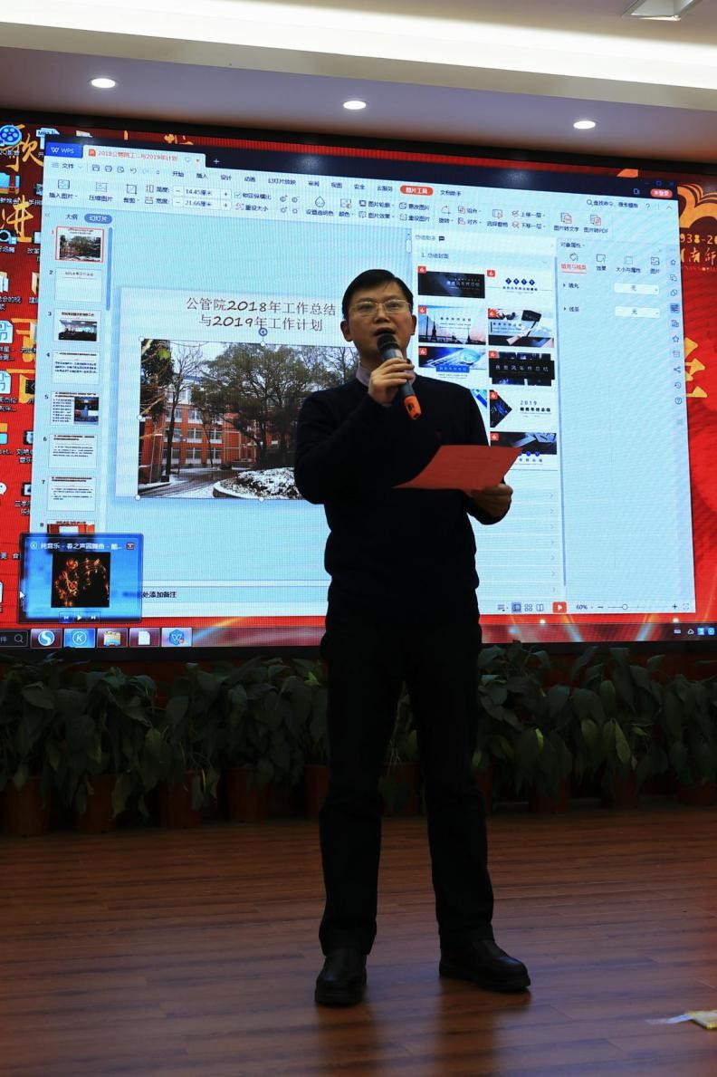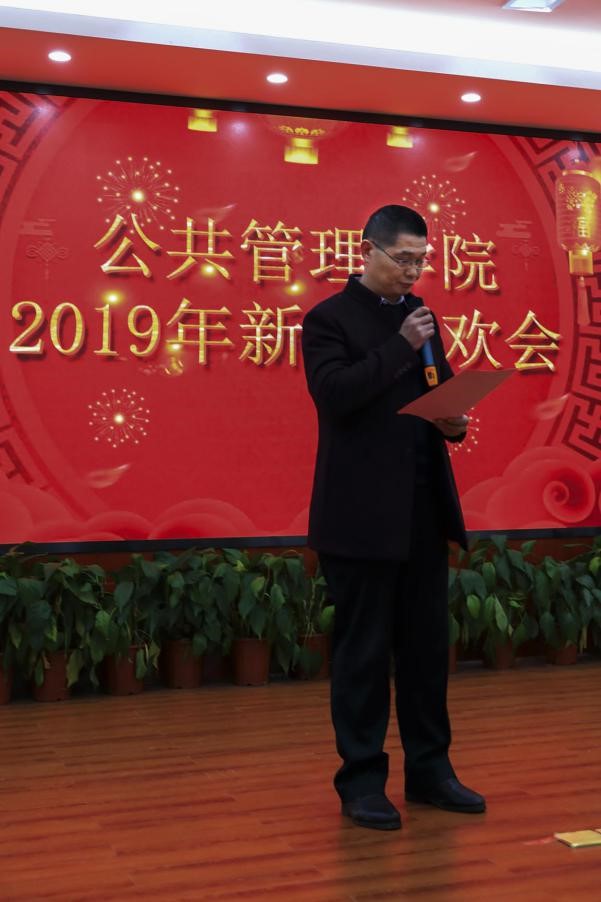 1月13日下午,公共管理学院隆重举行2019年春节联欢会。学院领导毛新志、余望城、彭继红、孙雯波等出席活动,与全体教职工、离退休职工、学生代表欢聚一堂,共贺新春。
