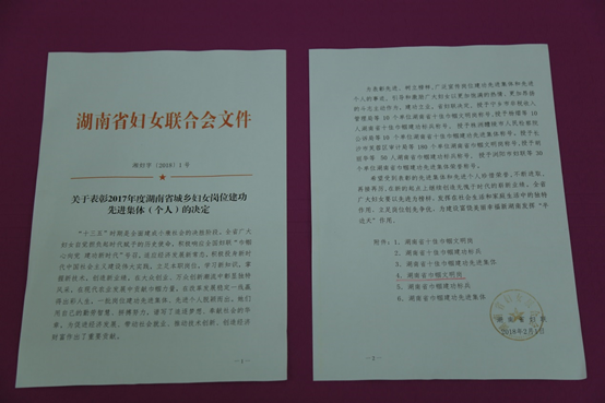 2月1日,湖南省妇联办公室印发《关于表彰2017年度湖南省城乡妇女岗位建功先进集体(个人)的决定》(湘妇字[2018]1号),表彰了一批积极响应全国妇联“巾帼心向党,建功新时代”号召,适应经济发展新常态,积极投身新时代中国社会主义建设伟大实践,立足本职岗位,学习新知识,掌握新技术,创造新业绩,在大众创业、万众创新潮流中彰显独特风采的一批岗位建功先进集体、先进个人。其中,太阳集团tyc151图书馆荣获“2017年度湖南省巾帼文明岗”称号。