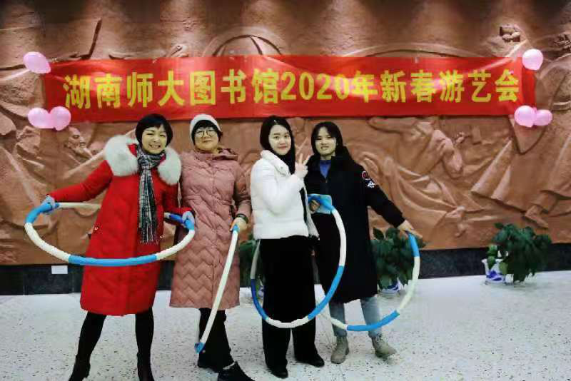 1月9日上午,图书馆部门工会在图书馆二楼大厅举办新春游艺会。