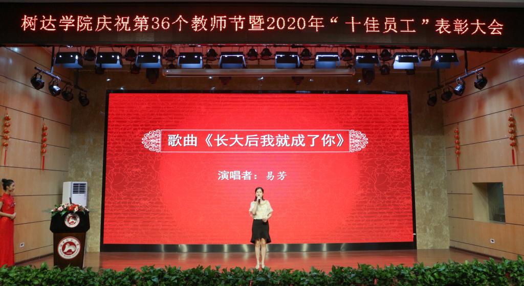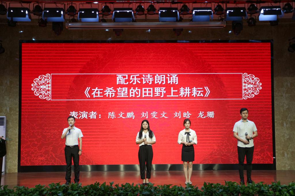 学院老师表演了配乐诗朗诵《在希望的田野上耕耘》和歌曲《长大后我就成了你》,为全体教职工送上美好节日祝愿。