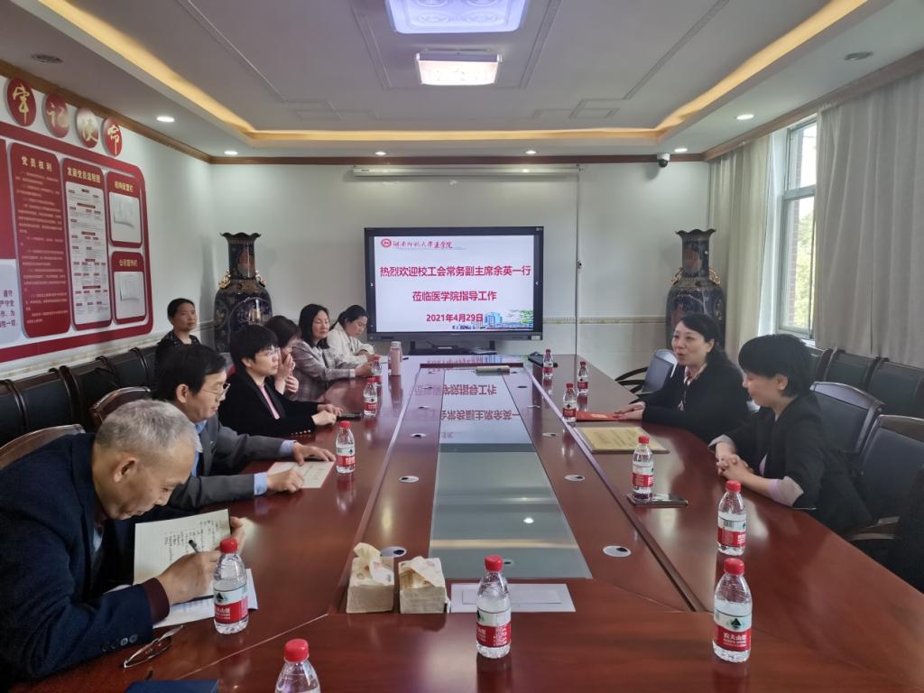 鄢朝晖对余英一行来学院指导工作表示衷心感谢。她表示,学院将全面落实学校和校工会的工作部署,在思想政治引领中凝聚教职工力量,在服务大局中彰显担当作为,竭诚为教职工做好服务工作,继续开创工会工作新局面。