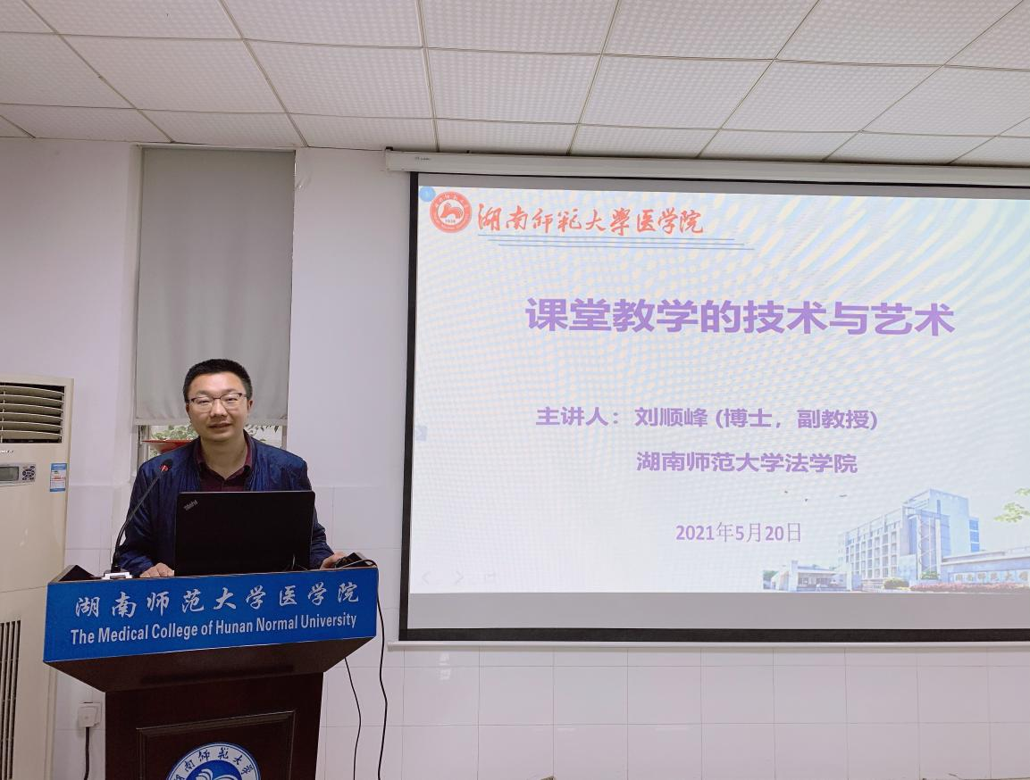 刘顺峰副教授以“《中国法制史》之《唐律的特点和影响》”为例讲解课堂上的教学艺术与技巧。他认为,课堂导入十分重要,可以多使用图片和有趣的案例来激发学生学习兴趣,课程中通过开展“模拟法庭判案”等活动让学生参与课堂,课后也可以布置阅读资料从而来引导学生自主探索和思考。