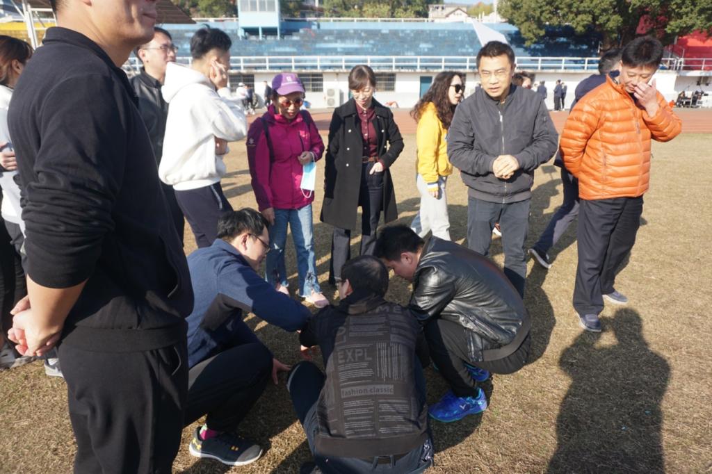 比赛过程中,课堂上的文人雅士变了成钢铁战士,窈窕淑女展现出飒爽英姿。在“铁甲战车”项目的比赛中,蔡卫民老师突感不适,却仍然忍痛拼搏毫不放松,坚持参加完比赛项目;高挑纤细的刘娴老师在趣味投篮比赛中巾帼不让须眉,百发百中,获得全场欢呼。啦啦队员忙前忙后为赛手递水搽汗、补给食物。整个比赛在全体老师的紧密配合和协作中取得圆满成功。