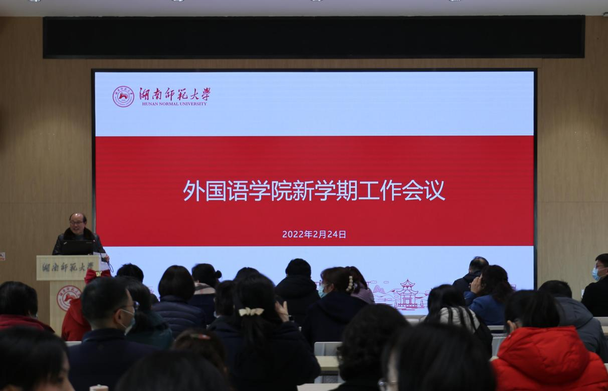 (通讯员 严茳葶 童雨莎)2月24日下午,外国语学院于腾龙楼613多功能报告厅召开2022年新学期工作会议暨教职工代表大会。院长曾艳钰作新学期工作报告,全体院领导出席会议。会议由院党委书记李泳波主持。