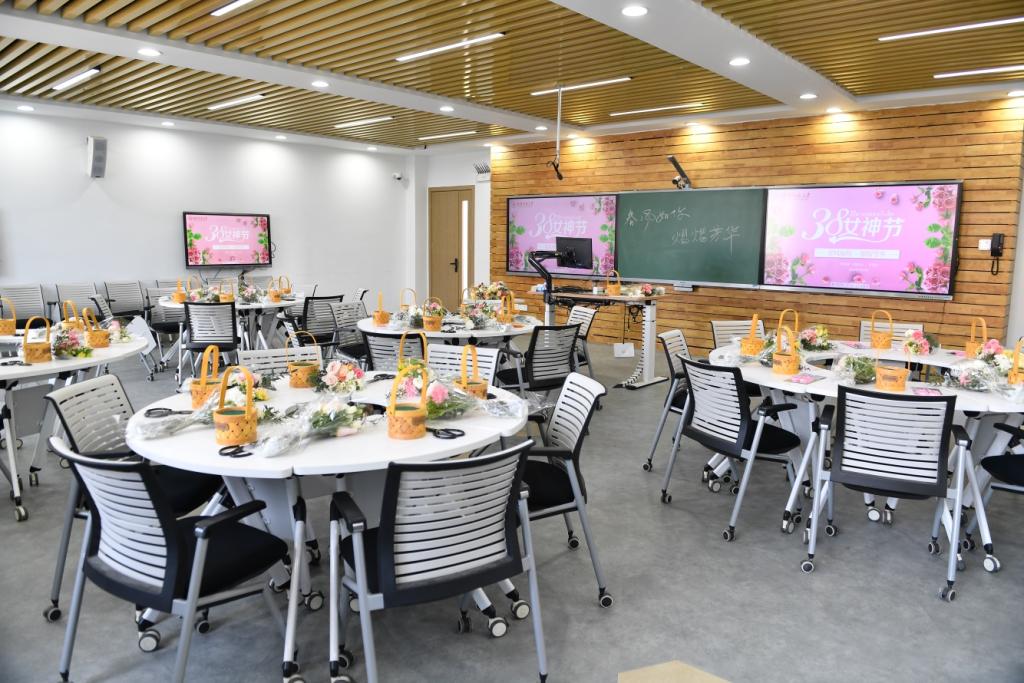 为丰富女职工精神文化生活,庆祝 “三八”妇女节来临,3月7日下午,教务处(双创办)、评建办工会小组在至善楼410教室举办了“春风如你 熠熠芳华”主题艺术插花活动,校工会副主席邓宏霞出席活动。活动由创新创业教育办公室专职副主任安宁主持。