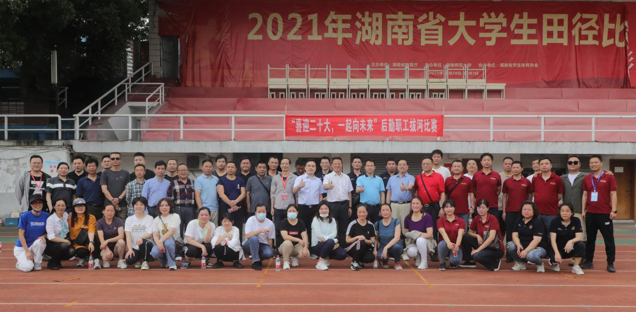 (通讯员 李洋)5月25日下午,后勤管理处(后勤集团)在二里半校区田径场举办了“喜迎二十大,一起向未来”拔河比赛,共8支代表队参赛。副校长刘怀德出席活动。