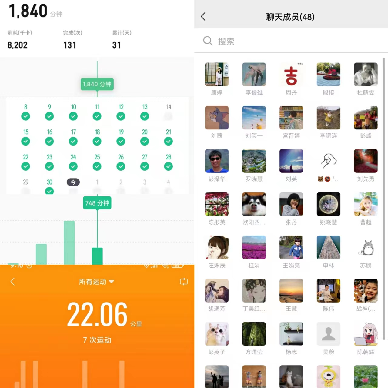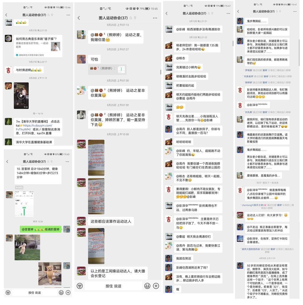 图人运动协会以“强体魄,抗疫情,我运动,我快乐”为主旨,充分利用群平台优势,开展线上线下积极互动,分享老师们的运动成果和运动经验,营造浓厚的运动氛围,鼓励老师们以丰富多样的方式坚持运动。打卡内容包括工间操、羽毛球、乒乓球、游泳、跳舞等运动,也可包括运用运动APP,个性化定制的跑步、跳绳、跳操、瑜伽等活动,还有健身房器械训练等。