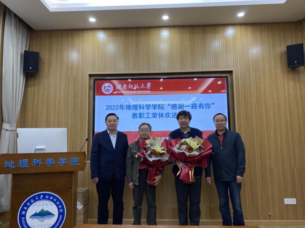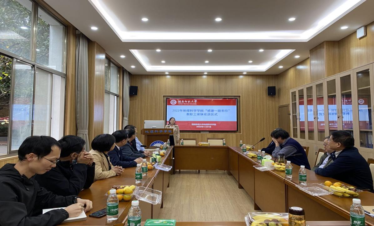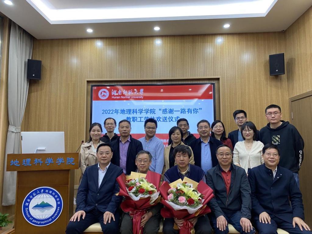 11月3日下午,地理科学学院工会为2022年度光荣退休的蔡业忠老师和蔡松柏老师举办了以“感恩一路有你”为主题的欢送会。院党政领导、工会及两位老师所在的土地科学系部分教师出席,欢送会由院工会副主席王婷主持。