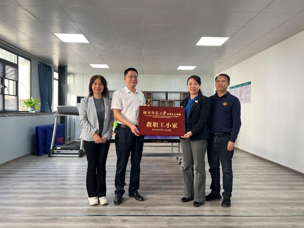 11月10日,化学化工学院部门工会“教职工小家”建成揭牌。校工会常务副主席余英、学院党委书记谭东波及工会主席余丽萍为“教职工小家”揭牌。校工会副主席杨格花、邓宏霞、杜汉文,校工会组织宣传部部长谢俊,以及学院副书记段婷,副院长宋春红、谭蓉,化学生物学及中药分析教育部重点实验室专职副主任周子虬等出席揭牌仪式。