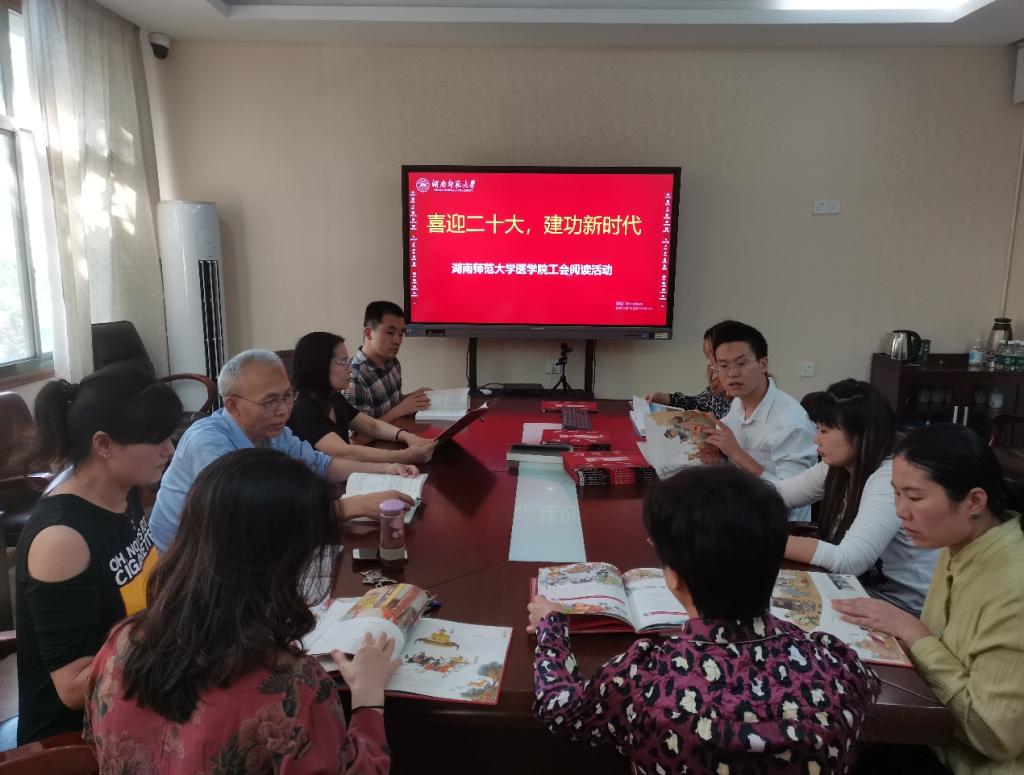 11月11日中午,医学院工会在办公楼3楼会议室开展“喜迎二十大 建功新时代”教职工阅读活动。学院党委书记鄢朝晖、全体工会委员及部分教职工参加活动。活动由学院工会主席袁仕善主持。