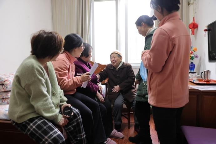 3月3日上午,图书馆第三党支部书记赵艳枝带领支委成员、退休支委代表前往望江楼敬老院,看望慰问93岁高龄的退休党员欧阳曼群。自2019年开展结对帮扶以来,看望欧阳老师已经成为了支部每学期常规工作。大家围坐在老人房间,与老人嘘寒问暖拉家常,聆听老人回忆曾经的图书馆岁月,欢声笑语不断,处处洋溢着浓厚的敬老爱老之情。