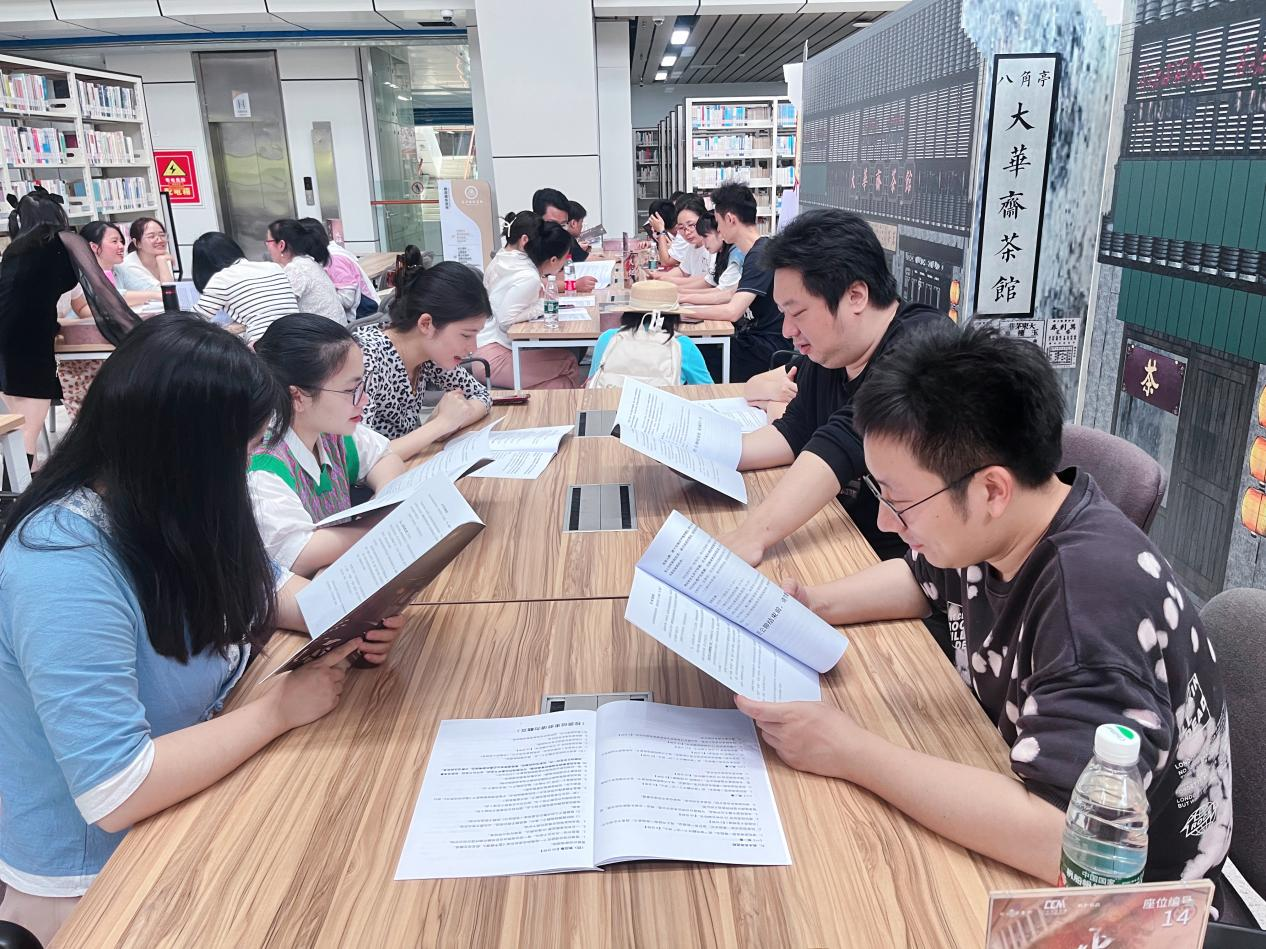 老师们先分组讨论剧本--《火炬》,该剧本是长沙图书馆深入挖掘馆藏地方文献,以长沙烈士郭亮为原型,生动展现了革命时期长沙人甘于奉献的大无畏精神。接着各位老师分别化身为剧本中各方人物,通过情节设计、场景模拟、线索推理等沉浸式剧本体验模式,开启了一场身临其境的“营救郭熠”红色剧本阅读解谜活动。