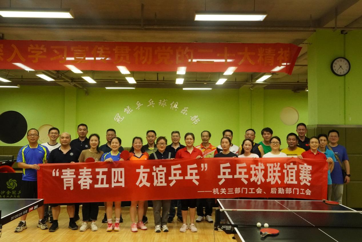 (通讯员 李洋 何小芳) 为进一步加强二级部门职工间交流,丰富职工的业余文体生活,营造浓郁全民健身氛围,5月5日下午,后勤部门工会与机关三部门工会在冠能乒乓球俱乐部共同举办了“青春五四 友谊乒乓”乒乓球联谊赛。资产经营管理有限责任公司郑波担任本次联谊赛总裁判。