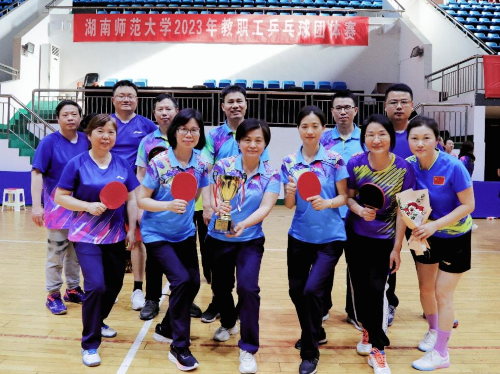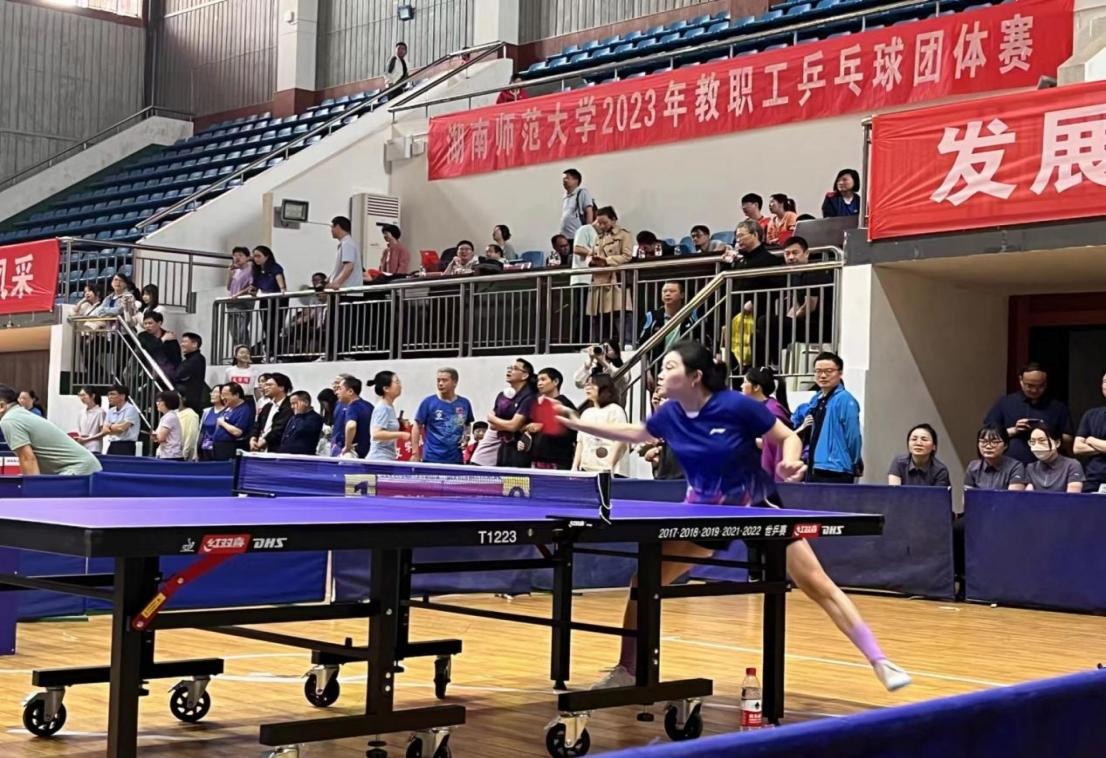 5月13-14日,学校2023年度教职工乒乓球团体赛在南院体育馆举行。图书馆党总支书记罗晓慧、副馆长胡开胜和刘英(兼部门工会主席),带领10名队员参加比赛。