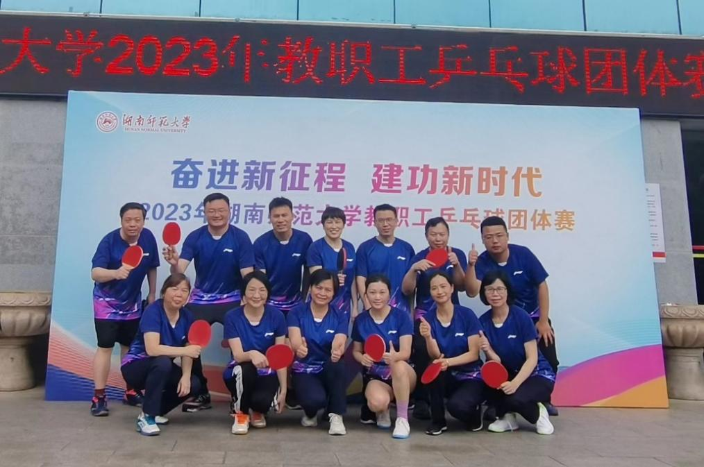 图书馆党总支和馆行政一直高度重视职工的身心健康,支持馆工会成立了多个运动协会。为备战此次比赛,馆工会组织乒乓球协会成员先后与湖南大学图书馆、学校后勤处进行了两场乒乓球友谊赛。本次比赛期间,在家馆领导全程到场指导并为队员加油鼓劲,精心研究排兵布阵,安排后勤团队订餐送水,做好贴心服务等。本次比赛,赛场上,队员们挥洒汗水,奋力拼搏;桂娟老师实时技术指导,提振信心;彭峰老师实时发布赛事实况,图书馆老师线上线下齐声呐喊助威,充分展示了图书馆人努力拼搏、积极向上、奋勇争先的良好精神风貌,激励更多的职工积极参与健康向上的文化体育活动,强健体魄,快乐工作快乐生活。(彭 峰)