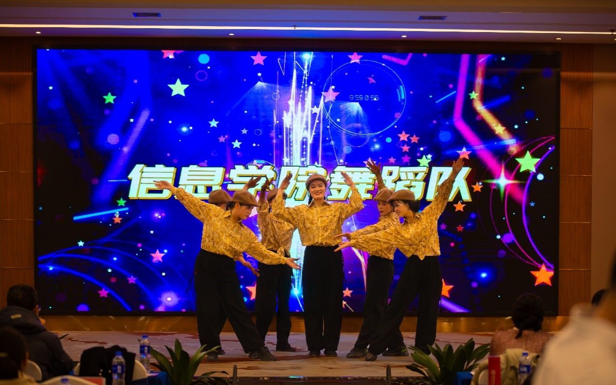 随后,各个系主任们的合唱更是展现了学院内部的团结和协作,和谐的声音在晚会厅内回荡。别有风味的是,学院宝宝们的可爱表演更是将整个晚会推向巅峰,歌舞间展现着青春的活力,让现场观众欢呼连连。值得一提的是,信息院各系教职工也踊跃登台,学院计算机系、通信工程系、人工智能系、软件工程系、物联网工程系以及实验中心都献上了高水平的集体表演。他们的表演既展现了专业素养,又让观众感受到了团队协作的魅力,为整场晚会增色不少,赢得了满堂喝彩。