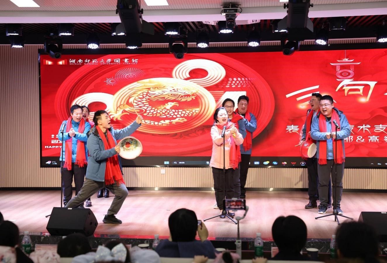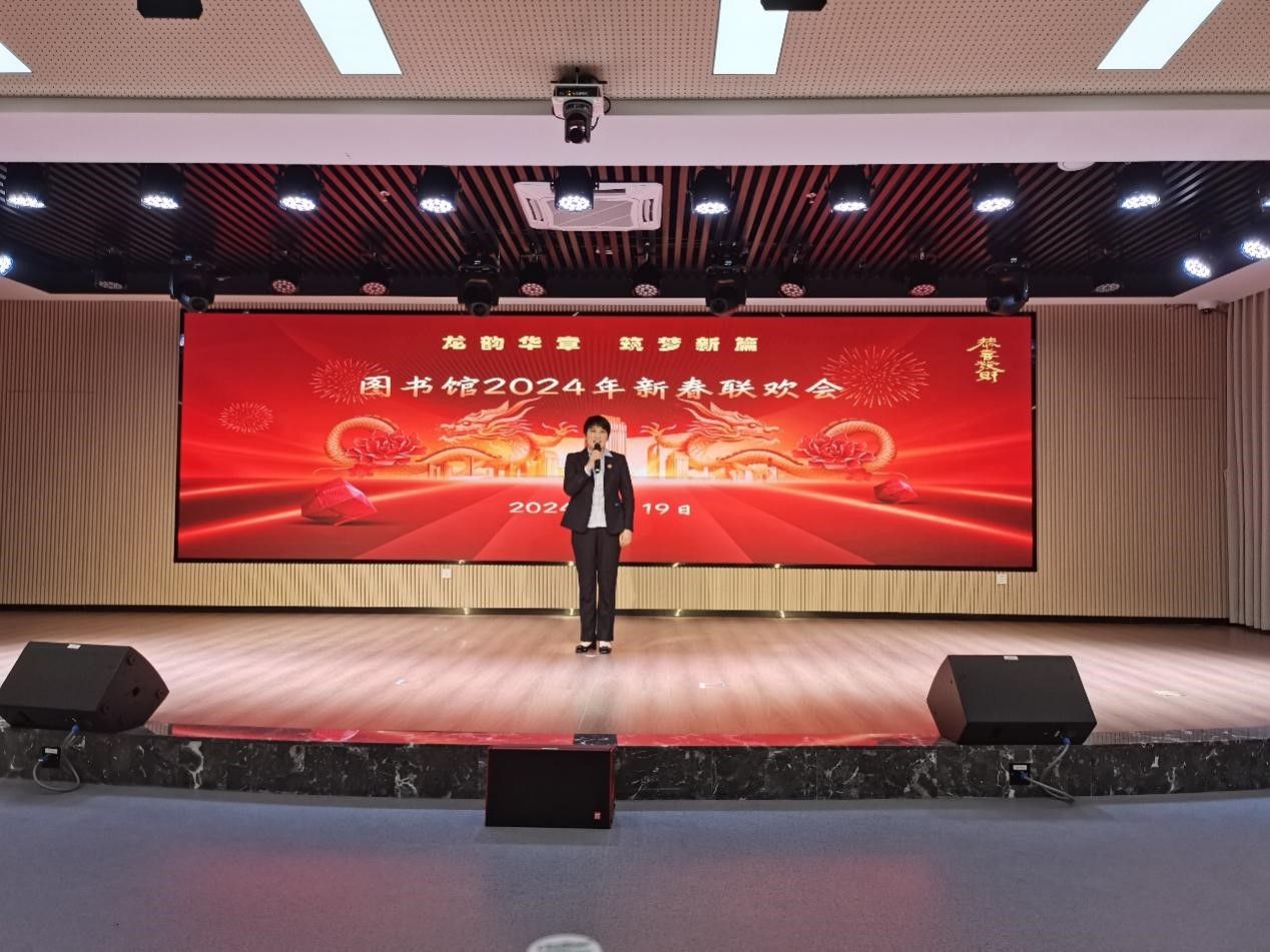 1月19日下午,图书馆在103文化交流空间举行“龙韵华章 筑梦新篇” 2024年新春联欢会。晚会由龚晓林、姚晓慧、段超、刘奥粤主持。