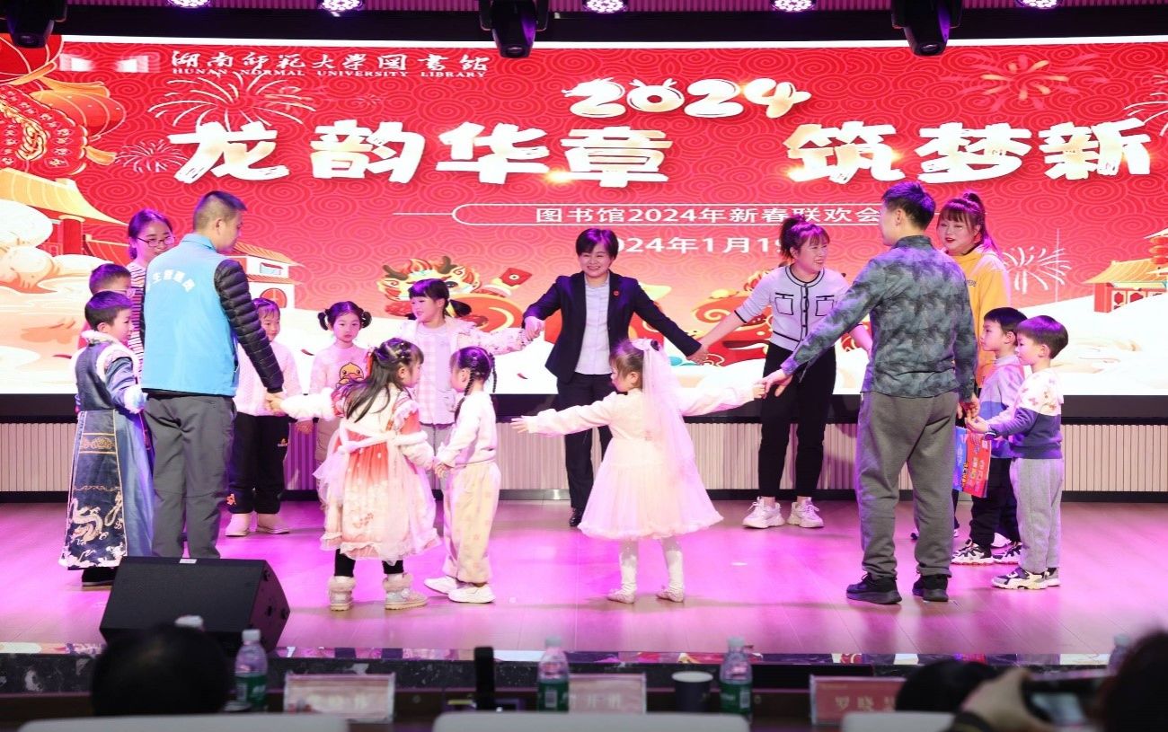 新春联欢会在办公室工会小组的朗诵《我们是离书最近的人》中拉开序幕。采编部工会小组的《欢乐小人舞》和青年老师们的趣味舞蹈《谁是我的新郎》造型独特,风格幽默,引得观众捧腹大笑;信息服务部和情报研究部工会小组朗诵《唐诗里的中国人》,声情并茂、感情真挚,深深打动了现场观众;系统管理部和高数图工会小组、文献借阅部工会小组都自编自导了《三句半》,结合工作实际的原创内容,引发了强烈共鸣;阅读推广部和分馆管理部工会小组带来的《亲子舞蹈串烧》、工间操代表队的《舞蹈串烧》,将孩子们的天真童趣和女老师们的青春活力展现得淋漓尽致;副馆长龚晓林和刘盈盈等老师的歌伴舞《把一切献给党》,歌声优美动听,舞蹈美轮美奂;古籍特藏部和博物馆工会小组的皮影戏《三打白骨精》,将传统艺术和现代舞台相融合,精彩绝伦;余跃等14位老师和子弟着汉服倾情演绎书简舞《楚风雅韵 乐游园》,为观众们带来了一场视听盛宴,赢得了热烈掌声;游艺活动和幸运大抽奖,更是让现场氛围紧张激烈,高潮迭起;“终曲”环节,读者服务部工会小组老师们手持红灯笼,深情演唱《如愿》,为大家送上美好的祝愿,台下观众挥手呼应,齐声合唱,为联欢会画上了圆满的句号。