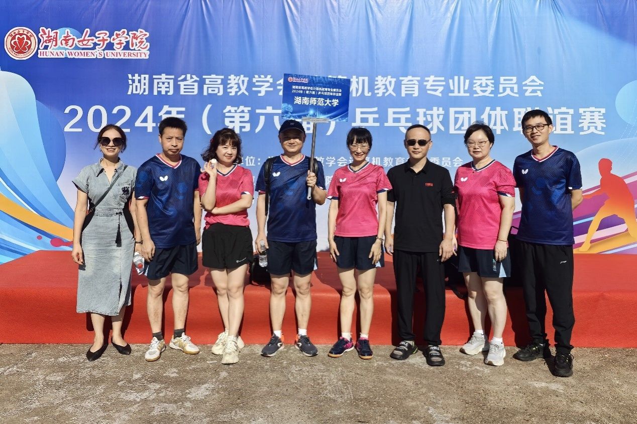 7月7日,为加强省内各高校计算机(通信类、信息类)学院之间的交流,增进友谊,以球会友,切磋球技,湖南省高教学会计算机教育专业委员会在召开2024年学会年会期间,举办了“2024年(第六届)湖南省高教学会计算机教育专业委员会乒乓球团体联谊赛”。我校信息科学与工程学院乒乓球队由副院长唐文胜带队参加了比赛,队员有学院工会主席官理,成教办主任李玉胜,还有来自计算机科学系、人工智能系以及物联网系的教师魏书宁、肖柳明、周云霞、戴颖龙、李静等。