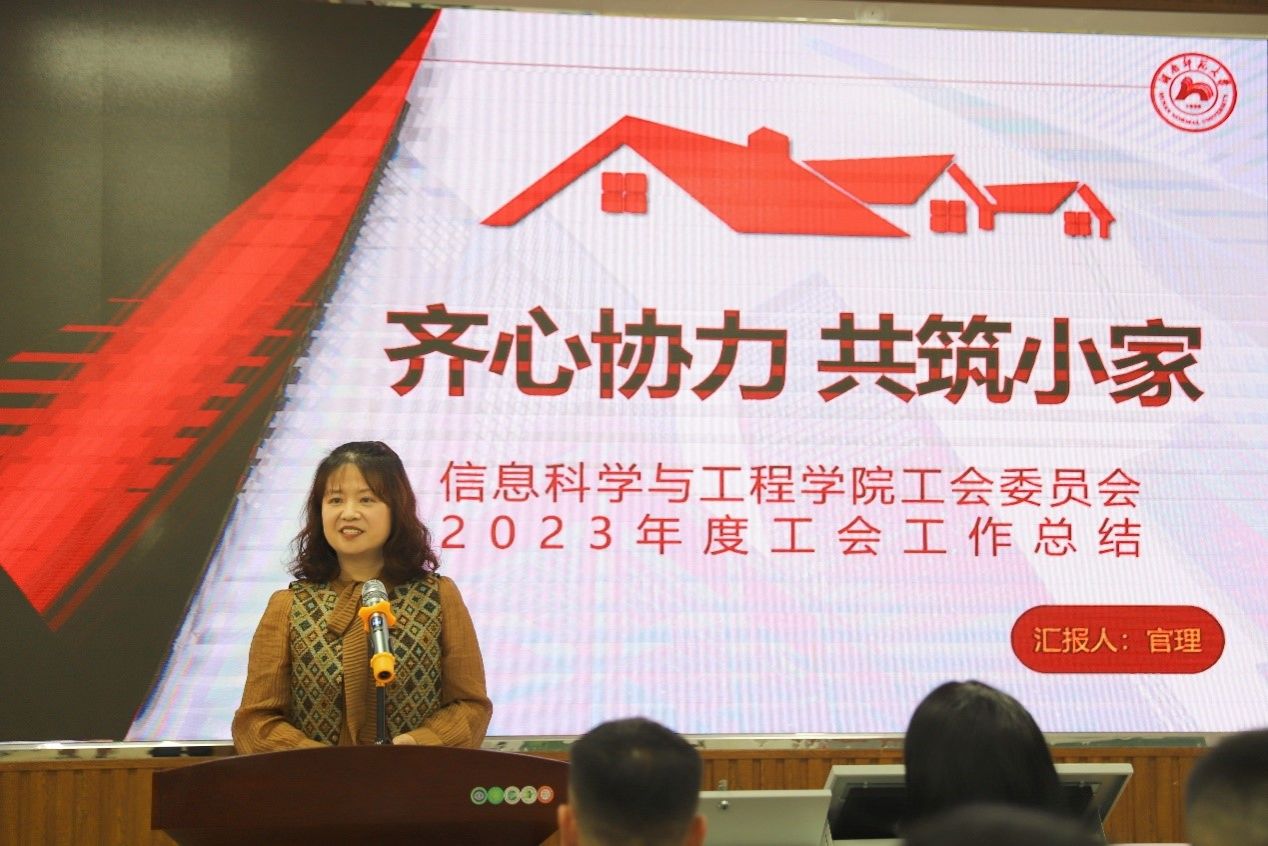 教代会在庄严的国歌声中拉开了帷幕。首先,工会主席官理作了题为《齐心协力,共筑小家》的工作报告。她详细回顾了去年信息学院工会在维护教职工权益,丰富教职工文化生活,促进校园文化建设等方面所取得的成就,并对全体教职工的辛勤付出表示衷心的感谢。官主席的发言赢得了与会人员的热烈掌声。