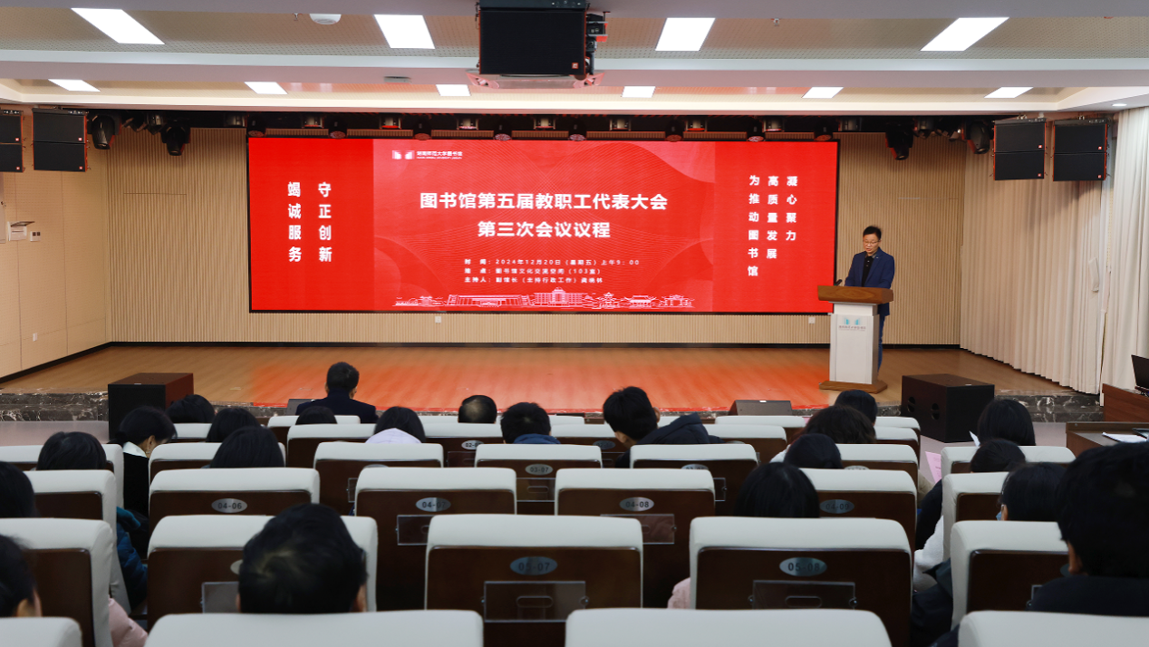 12月20日上午,图书馆第五届教职工代表大会第三次会议在馆103文化交流空间顺利召开。图书馆副馆长龚晓林(主持行政工作)、副馆长兼部门工会主席刘英(主持党务工作)、副馆长胡开胜参加会议。会议由龚晓林主持。