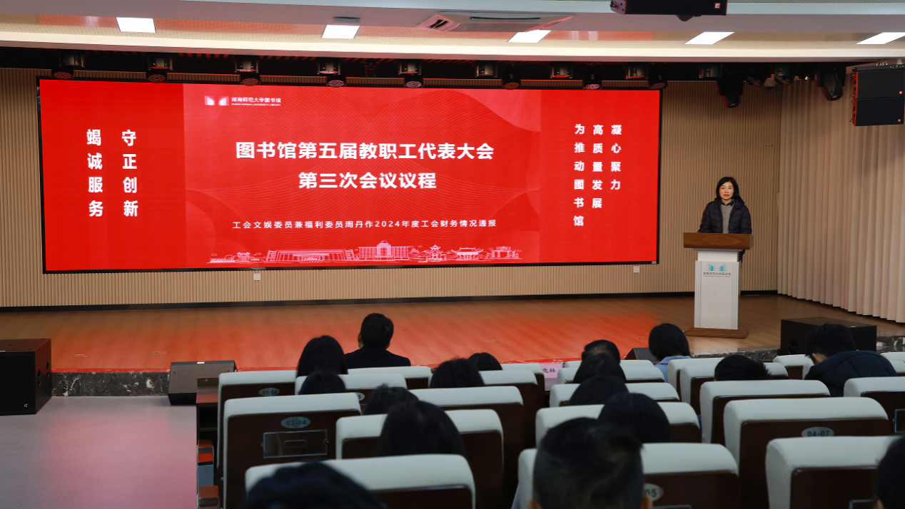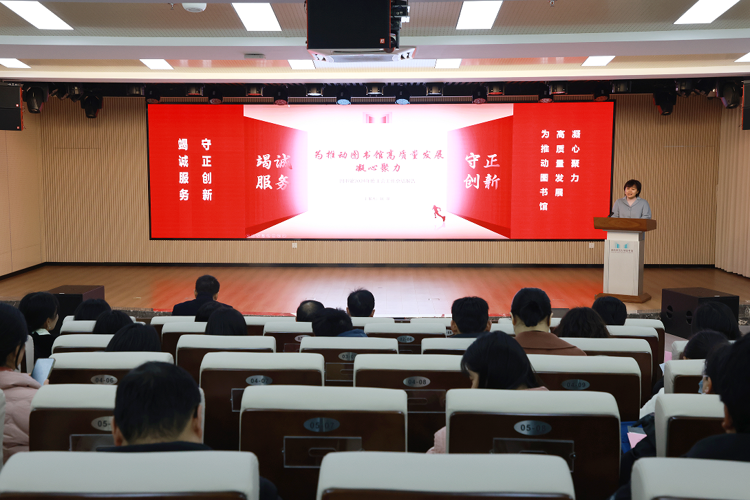 刘英作了题为《竭诚服务 守正创新 为推动图书馆高质量发展凝心聚力》工会工作报告。报告从坚持党的全面领导、坚持示范引领、坚持暖心工程、坚持职工文化建设、坚持固本强基五个方面全面总结回顾了图书馆2024年工会工作,并提出了2025年工会工作的努力方向和目标。