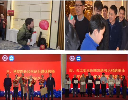 第二个环节“老教师荣休仪式”,韩广、刘新华、朱红旗、韦晓晖等四位老师依次分享荣休感言,院长周国华、院党委书记刘忠耿代表学院为他们赠送鲜花和纪念品,并做热情洋溢的讲话,感谢他们为学院发展建设所做出的积极贡献,希望他们发挥余热,继续为学院关心下一代工作发光发热。学院党委副书记、关工委主任陈媛、学院关工委副主任周英为荣休教师颁发聘书。