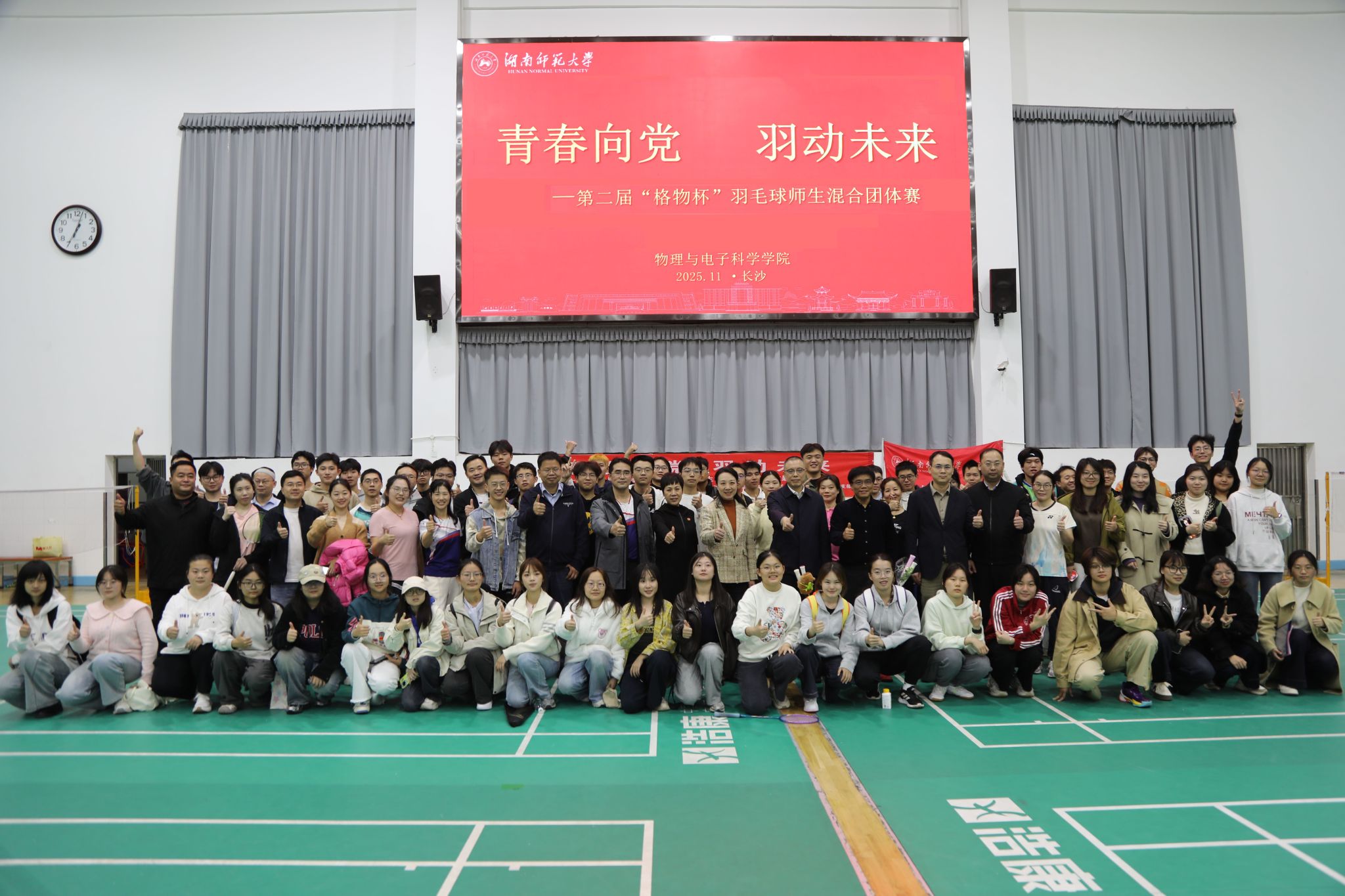 (通讯员 滕茂)为深入实践习近平总书记关于建设体育强国的重要讲话精神,增进师生情谊,弘扬体育精神,11月13日晚,物理与电子科学学院工会成功举办第二届“格物杯”羽毛球师生混合团体赛。校工会常务副主席余英、院长刘红荣、院党委书记罗嵘等领导出席活动。院党委副书记郑智、院工会主席吴普训分别主持比赛开闭幕式。