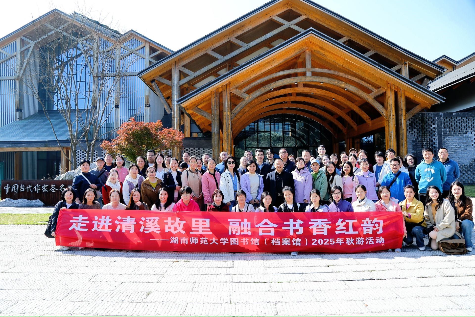 深秋气爽,晴光潋滟。11月13日,图书馆(档案馆)工会组织教职工赴清溪村,开展以“走进清溪故里 融合书香红韵”为主题的活动,既借秋游放松身心、凝聚合力,更结合业务场景开展学习,于文学沃土中涵养情怀、启发工作思路。