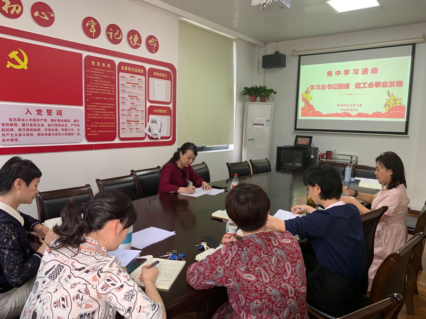 5月22日,湖南师大工会党支部开展了以“学习习近平总书记回信,促进学校事业发展”为主题的党日活动。活动由工会常务副主席、党支部书记余英主持。